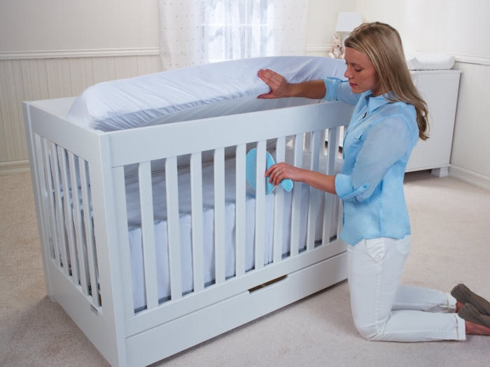 Natural durable wood with fixed sides, 2 inch rubber swivel casters and single mattress position Mattress is 4 soft king size pillows placed inside fitted sheet with warm double-sided fleece blanket on Munchkin Arm and Hammer Nursery Freshener provided to keep the room smelling ... View This Document